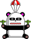 These are the first animals that appear to be robots, and imply that all of the enemies are really robots. They each hold two pieces of bamboo which act as propellers and descend with small a red and white parachute attached to their heads. They have black arms, black and pink ears and white head and body.